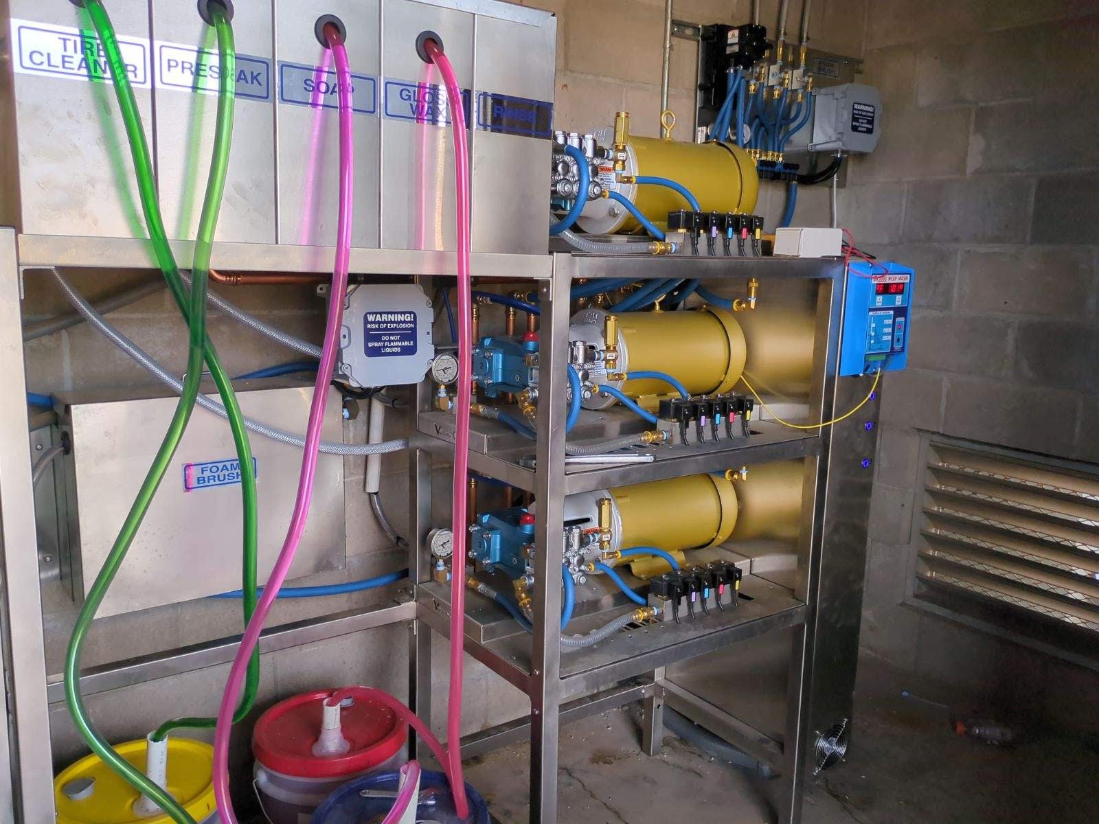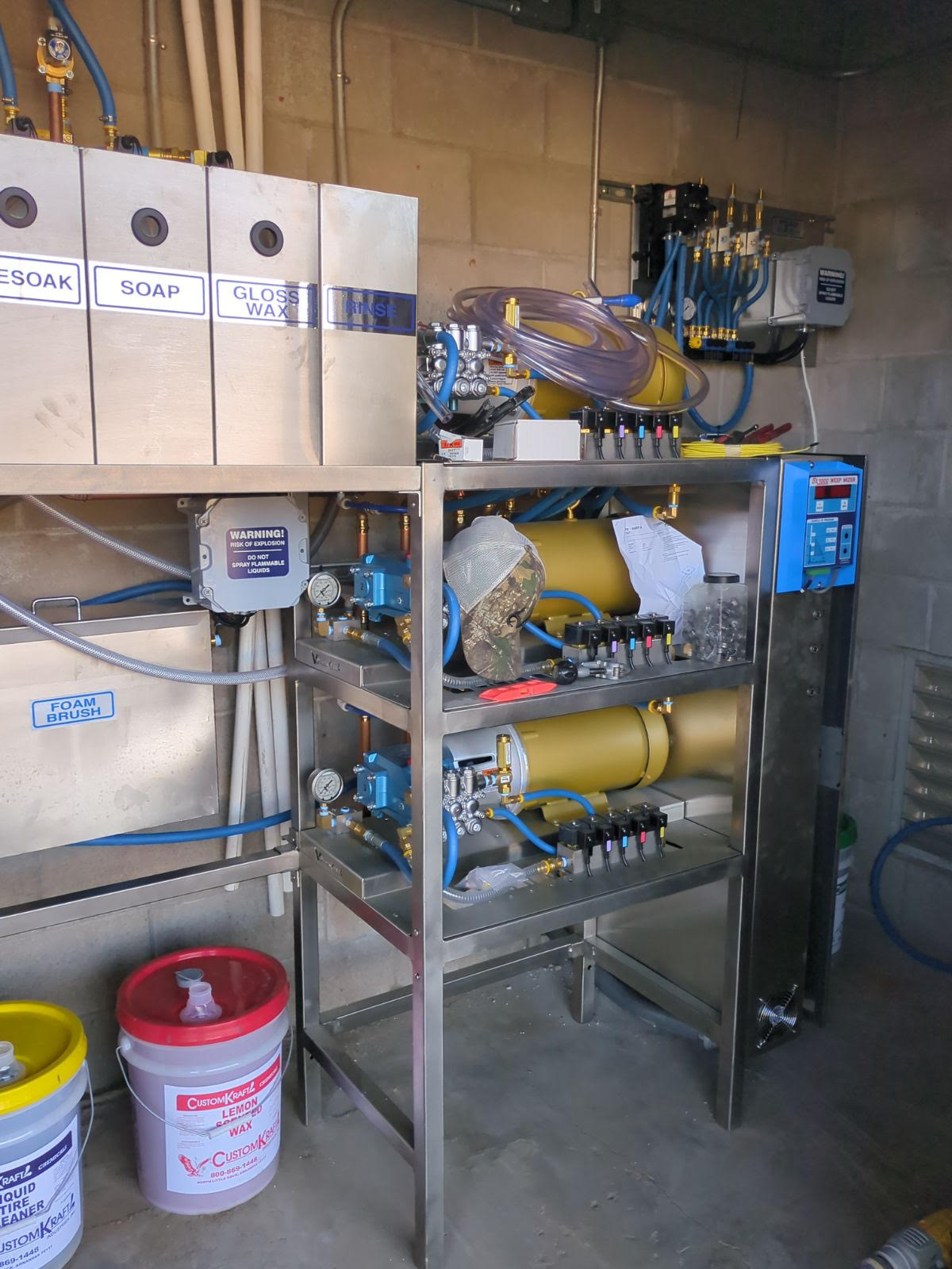 Description: Demoed and replaced existing equipment with a 3-unit, 5-function self-serve system, air compressor, water softener, and chemical booms.
